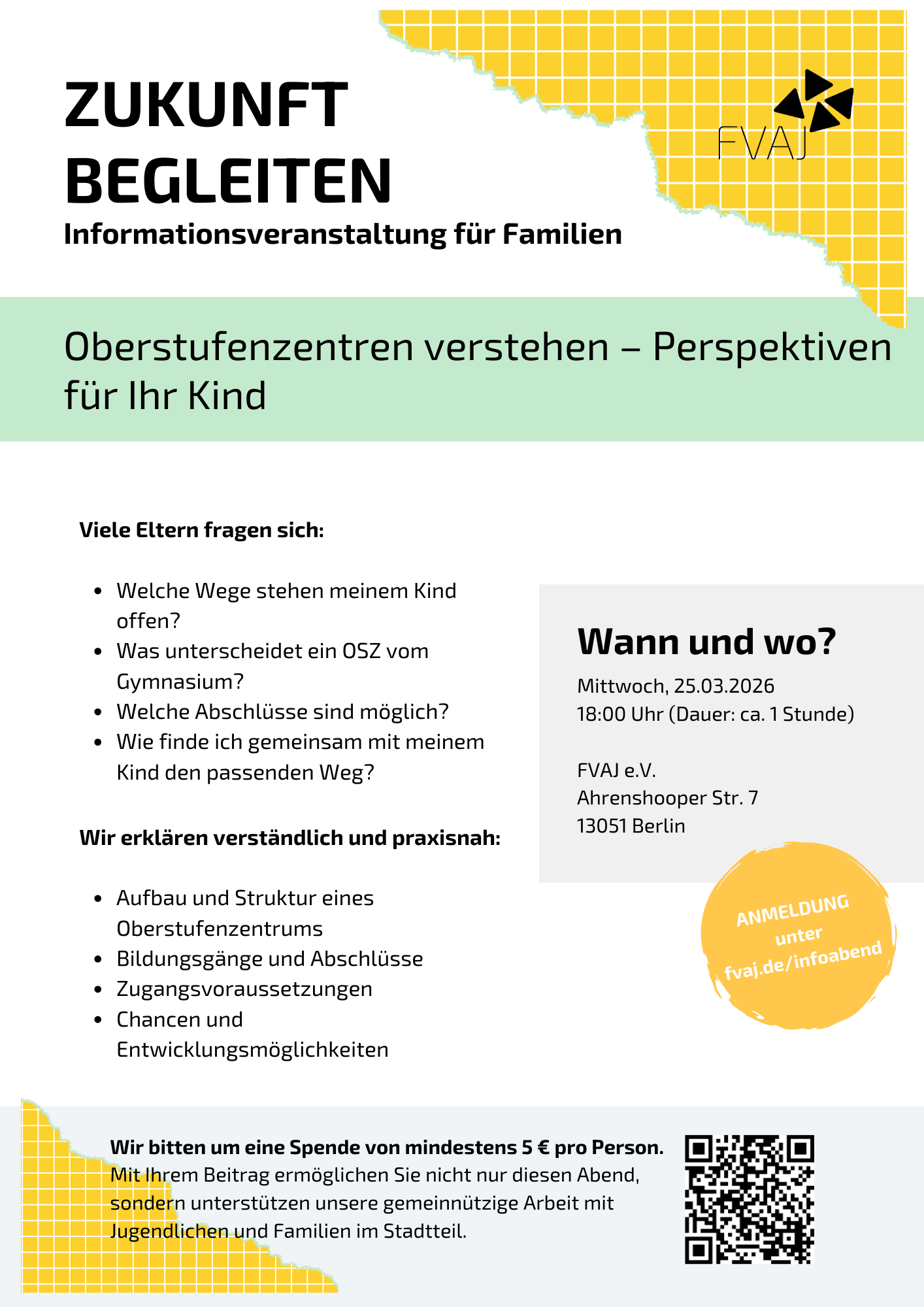 Was? Wann und wo? Wie? Anmeldung Wir bitten um eine Spende von mindestens 5 € pro Person.Mit Ihrem Beitrag ermöglichen Sie nicht nur diesen Abend, sondern unterstützen unsere gemeinnützige Arbeit mit Jugendlichen und Familien im Stadtteil. Wir freuen uns auf einen Abend voller Austausch, Orientierung und gemeinsamer Perspektiven.